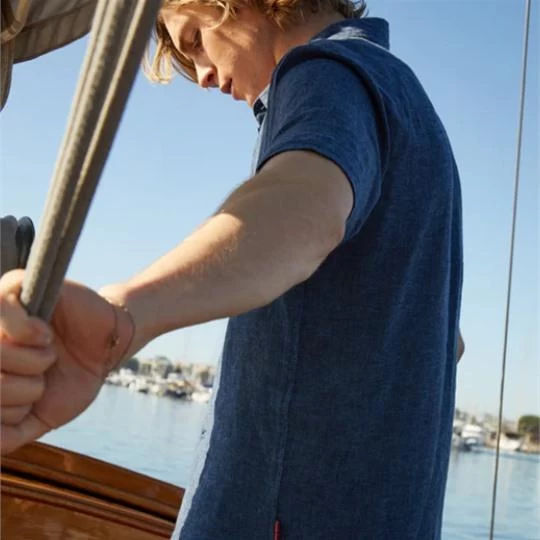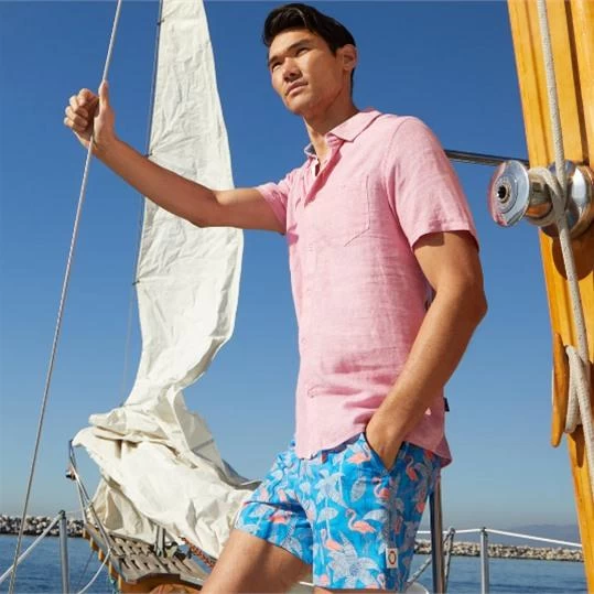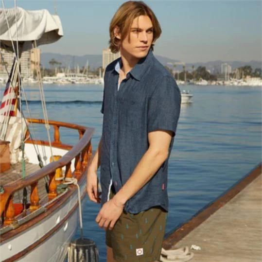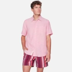 The Andros short-sleeve button-up shirt from Public Beach draws inspiration from classic men’s shirts and is crafted from a linen blend. It comes equipped with a buttoned chest pocket for securing cards and receipts.