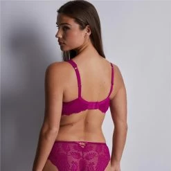 Underwired demi-cup bra in French jacquard lace. Flattering neckline, elasticized back, adjustable straps.