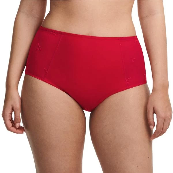 High-waisted shaping brief. Supportive front mesh. Embroidery on each side.