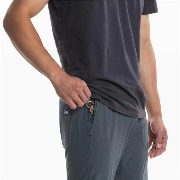 “Ease” cut designed to fit all body types. From the waist to the hips and thighs, featuring a slight tapering at the knee. Elastic waist with drawstring and pockets. 1 zippered security pocket at the front and back, with stretch fabric.
