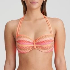 Almoshi Bikini Top: Balconette cut with adjustable straps, can be worn straight or around the neck.
