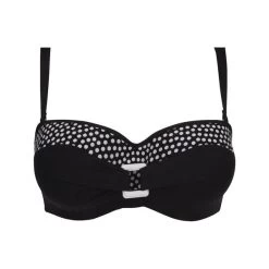 Haut de bikini bandeau avec attache au epaule style coquille rigide et a sechage rapide l’eau glisse sur la coquille avec une bordure a pois