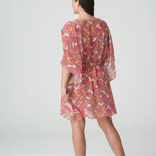 Caftan sympa à manches courtes et larges et à la coupe élégante. Vous pouvez le nouer vous-même à la taille. Parfait pour sortir en soirée, une journée de promenade ou pour la plage ! Summer Sunset combine les couleurs d’un coucher de soleil méridional avec des paillettes roses, bleues et dorées.