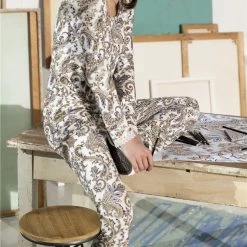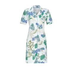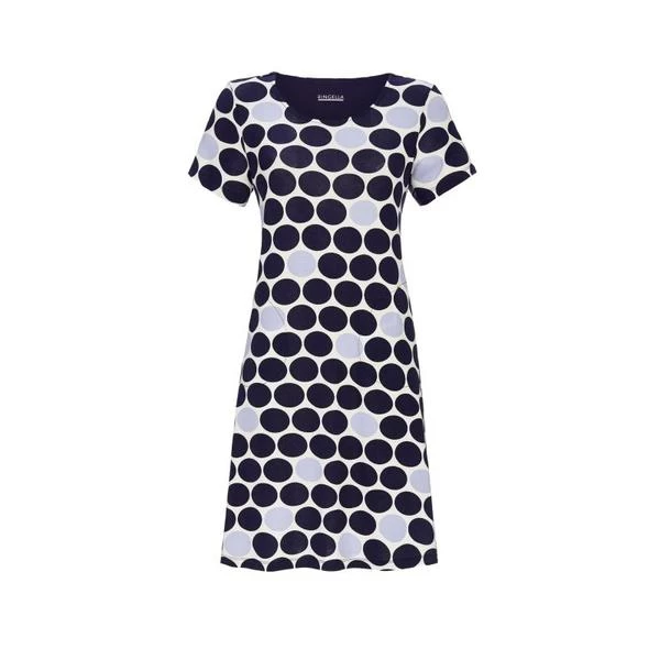 Short-sleeved nightgown with a round neckline and navy graphic motif. Regular fit, approximately 95 cm in length.