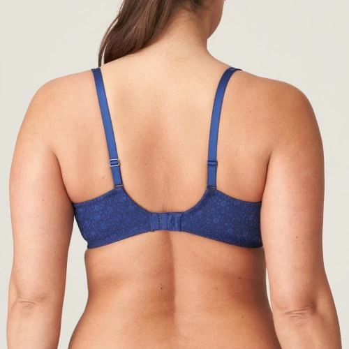 Elegant full coverage bra with vintage lace all-over, extending onto the straps. The refined lace creates no lines under clothing. Your favorite molded lace bra in Royal, a chic dark blue.