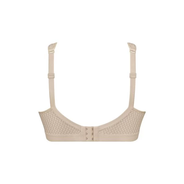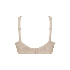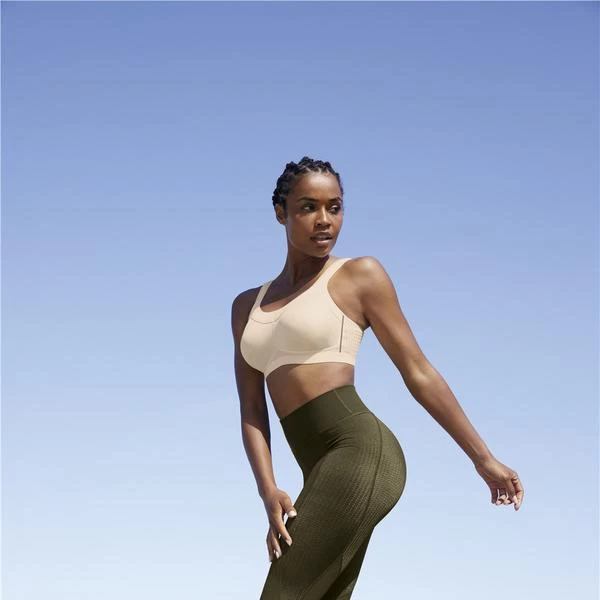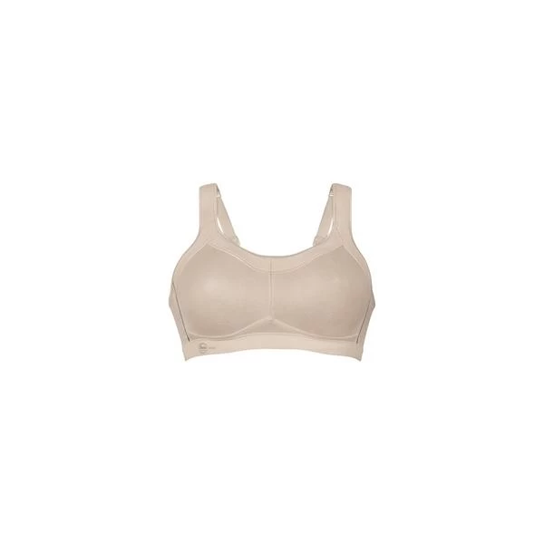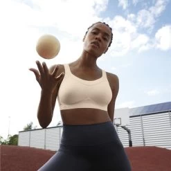 Adjustable strap sports bra with soft cups for maximum support during your workout. Pale pink, almost beige.