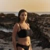 One-piece swimsuit with a cross-over mesh detail on the front that cinches the waist from the Submarin Blue collection. Adjustable straps.