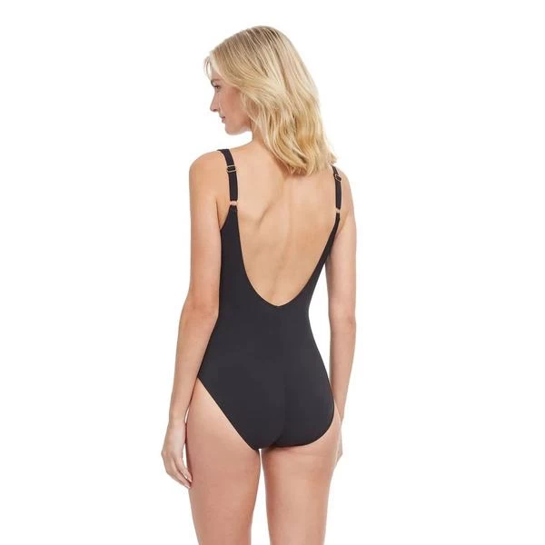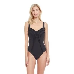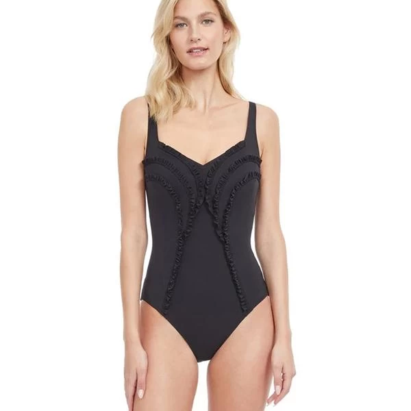 Sweetheart neckline one-piece swimsuit made from recycled materials. Adjustable straps.